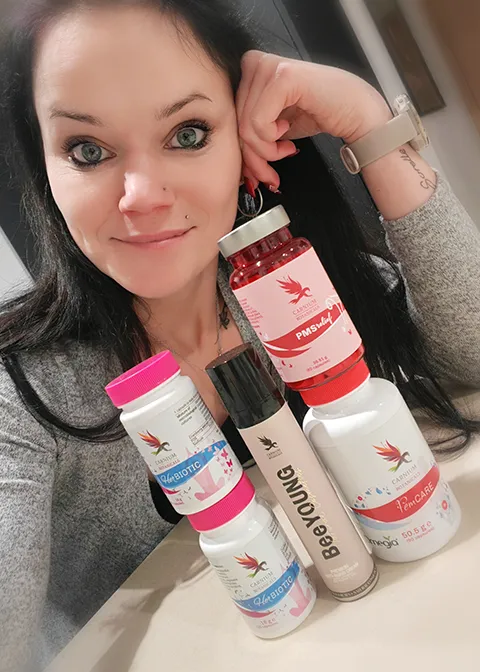 Suplementos alimenticios y cosmética natural para apoyar la salud y el bienestar de la mujer.